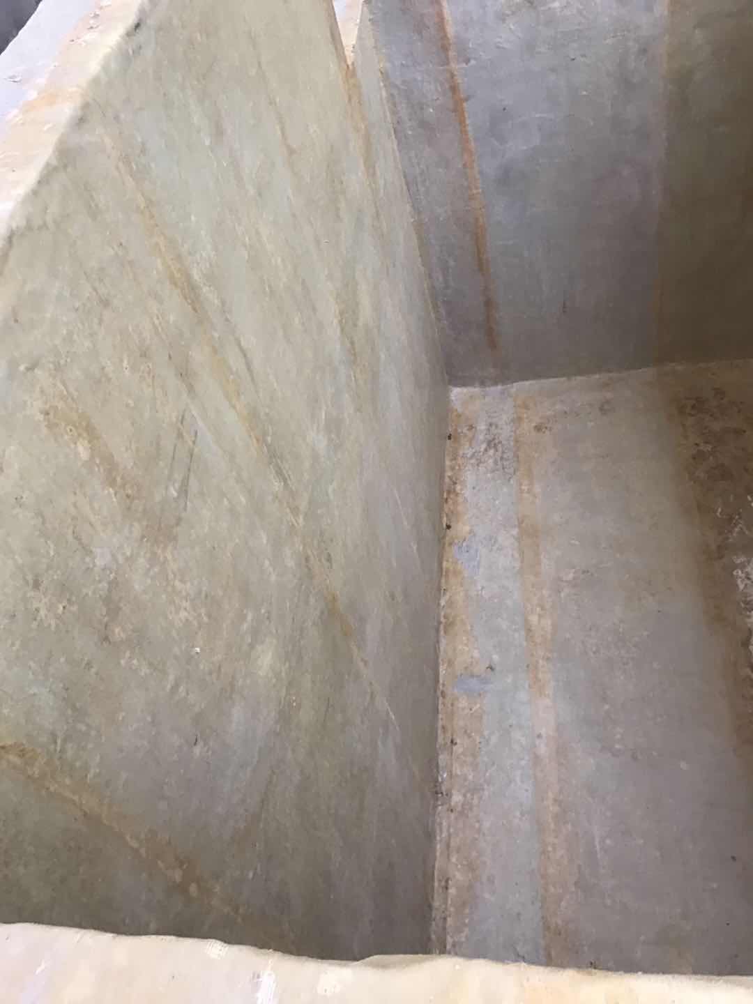 1、定义 环氧玻璃钢是环氧树脂胶料固化后形成的玻璃钢,因其固化后的分子链上有稳定的碳键和醚键,结构致密,具有良好的防腐蚀性能、防水性能,附着稳定,被广泛应用于工业建筑中的污水池、中和池、废液槽等池槽的防腐中。其原理就是通过在结构件(玻璃纤维布)表面涂刷环氧树脂胶料,经复合固化塑制而成隔绝空气的致密薄膜,从而达到防腐的目的。