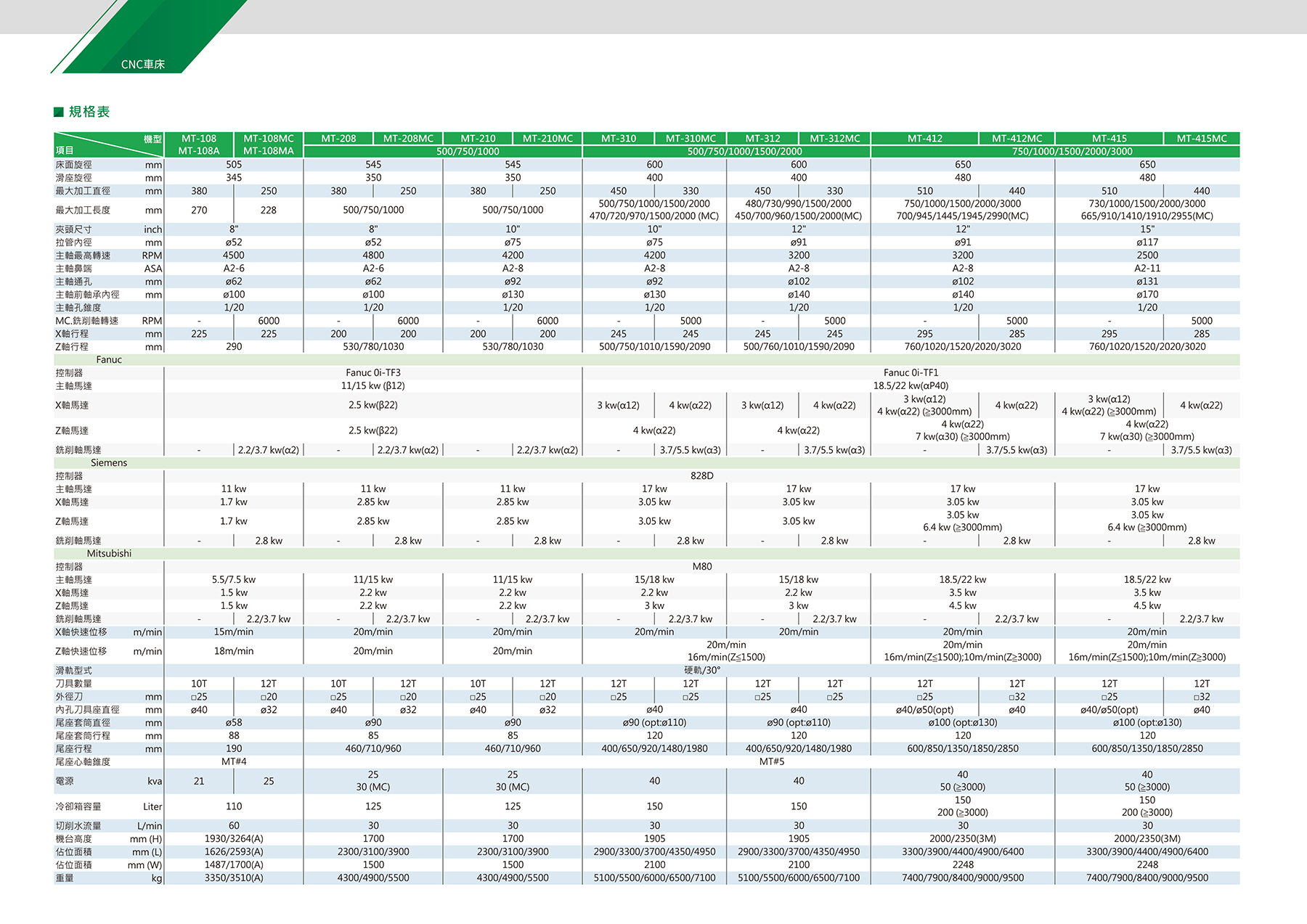 快速進給 | X 軸 | 20m/min、Z轴 | 20m/min |