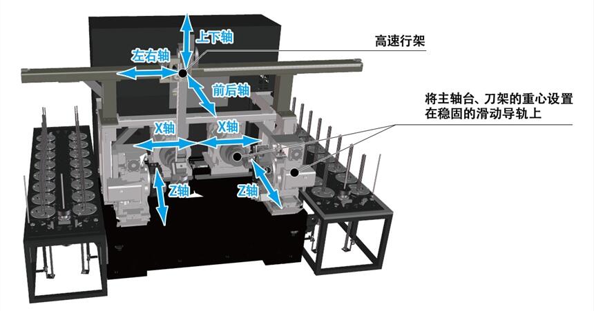 此外,还将移动体(主轴台、刀架)的重心设置在稳固的滑动导轨上。