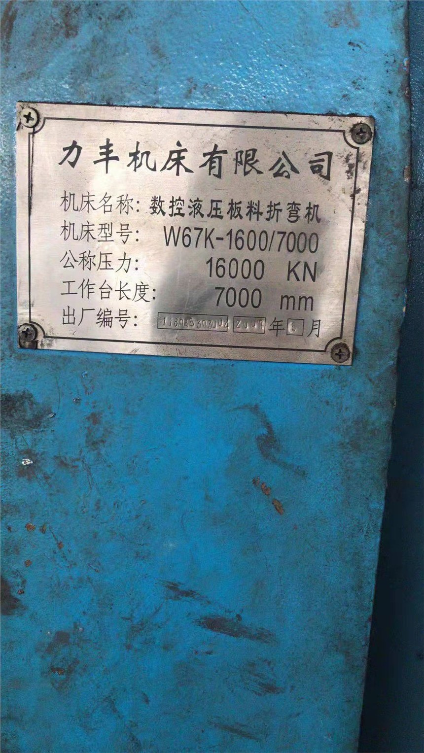 力丰1600吨数控液压板料折弯机型号W67K-1600/7000公称压力16000KN工作台长度7000mm年代2007年