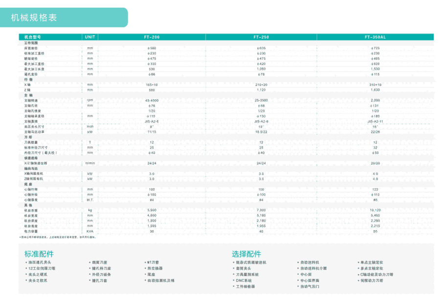 FTC-10、FTC-20、FTC-20L、FTC-30、FTC-260、FTC-300、FTC-350、FTC-350L、FTC-350XL、FTC-350LY、FTC-350LMC、FTC-350XLMC、FTC-350SLY、FTC-450、FTC-450MC、FTC-640L FT-200、FT-250、FT-350AL友佳车削中心 |