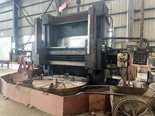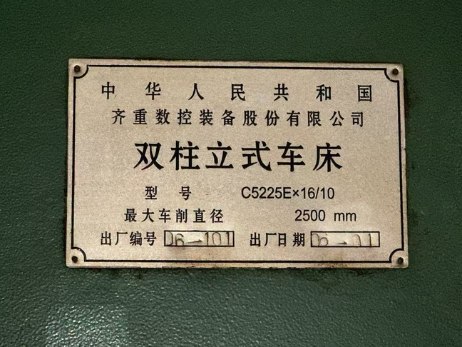 齐齐哈尔2.5米立车型号C5225E×16/10工作台直径2250mm最大切削直径2500mm最大工件高度1600mm最大工件重量12吨刀杆截面尺寸:40*50mm右垂直架最大切削力:3.5万N左垂直架最大切削力:3万N总切削力6.3万N工作台最大扭矩63000N/min 工作台转速级数:16级工作台转速范围2-63R/min刀架进给级量级数:交流18级AC刀架进给量范围:.025-90mm右垂直架最大行程水平1400mm垂直1000mm左右垂直架角度30度正负刀架快速移动速度:1560mm/min横梁最大行程:1250mm/min衡量升降速度350MM/min主电机功率:交流55AC55工作台导轨形式:动压/静压导轨