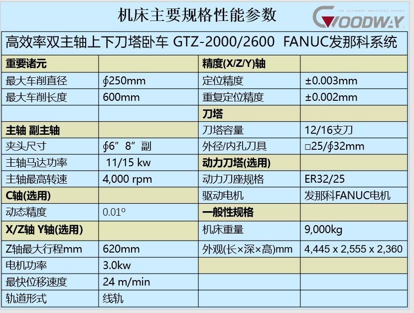 以下是程泰GTZ-2000/2600系列车床 基本规格介绍 (可选铣削钻孔 Y轴等功能)