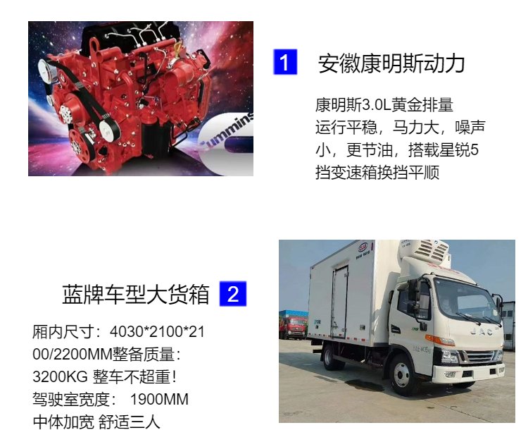 江淮骏铃V5排半4米2冷藏车3.0大排量康明斯150马力选装肉钩