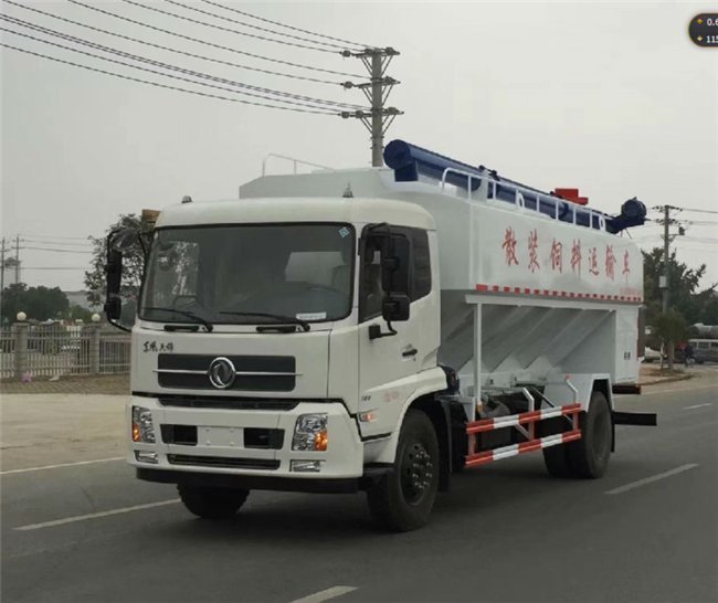 散装饲料车容积有12方、20方、22方、28方、30方、40方等多个型号选择,有电动绞龙卸料和液压绞龙卸料,装有380伏市电控制系统,可以加装车载发电机。常用常见可上户的车型底盘有:东风大多利卡,东风天锦,陕汽轩德,东风天锦XR,柳汽乘龙,解放J6,东风天龙。根据容积选择:单桥,小三轴,前四后八。