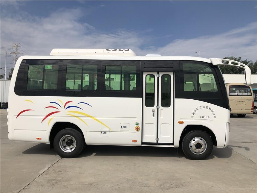 东风客车19座客车车辆型号DFA6600K5A【营运版标准配置】方向助力、离合助力、断气刹车、限速器、5档变数器、德纳车桥、前盘后盘制动器、车身稳定系统ESC(含ABS),干燥器、自动调整臂、发动机预热、胎压监测系统、制动衬片摩擦报警,发动机仓自动灭火装置;普通聚氨脂油漆,海绵座椅(全车安全带)、竹地板铺革,司机风扇、遮阳帘,电子钟,MP3收音机,点烟器,影视安装埋板及预留电源线,车载视频监控系统,高位刹车灯;全粘贴内藏推拉式侧窗,应急窗自动破玻装置,1个带换气风扇天窗,导雨槽,气动折叠门,铁花纹踏板;车内左侧内行李架、右侧顶扶手;标准后行李仓、侧行李仓。