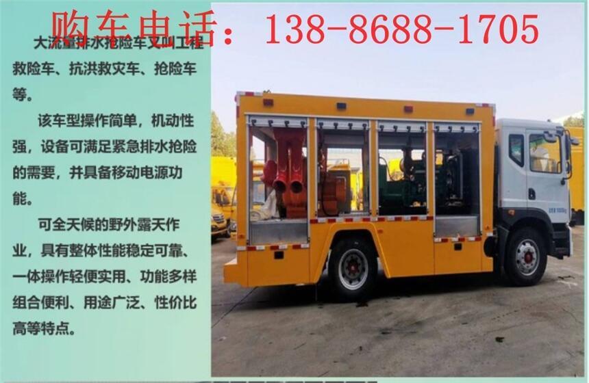 程力专用汽车股份有限公司研发的抢险车,工程抢险车,抗洪吸水车,应急电源泵车,移动水泵车。该车排水量1000立方/小时,操作简单,机动性强,真正实现了移动水泵的概念,设备可满足紧急排水抢险的需要,并具备移动电源功能。
