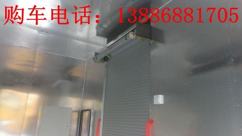 2、外部两侧及尾部安装多个卷帘门,并配备上车活动阶梯,可方便进出车厢内部进行施工及维修作业。车厢内顶分布多个照明灯,给夜间工作或维修作业时提供充分光线;