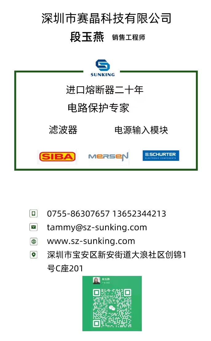 深圳市赛晶科技2004年成立至今主营产品:熔断器,保险丝,滤波器,电源输入模块,电容等。