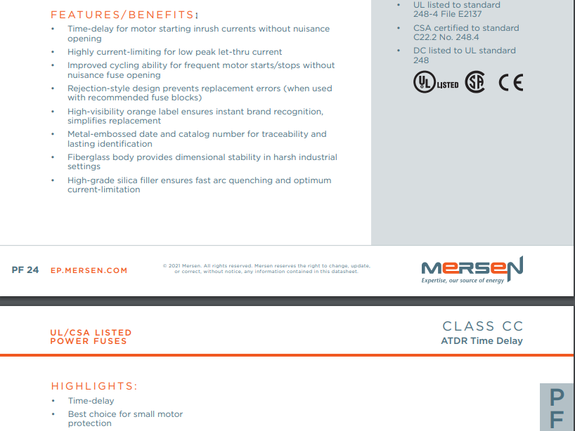 Amp-Trap 2000 延时 ATDR 小尺寸熔断器为贵单位日益敏感的分支电路组件和小型电机提供 IEC 2 类“无损坏”保护 - 最大限度地降低与故障相关的损坏风险。 ATDR CC 类熔断器提供同类产品中最佳的延时特性,并为小电机负载提供出色的循环能力。