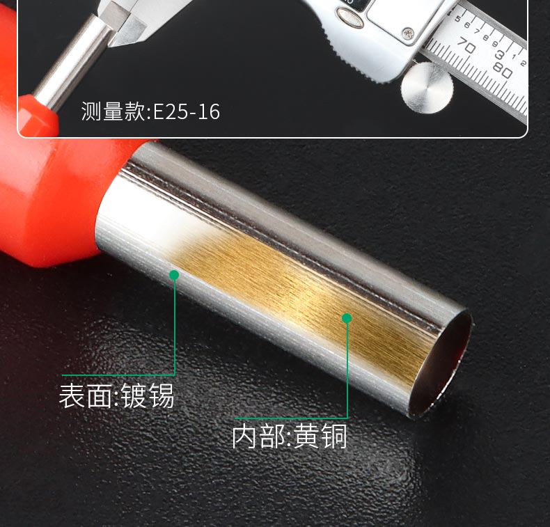 宇益E1508针形预绝缘端子镀锡VE1008欧式冷压接线端头压线耳黄铜