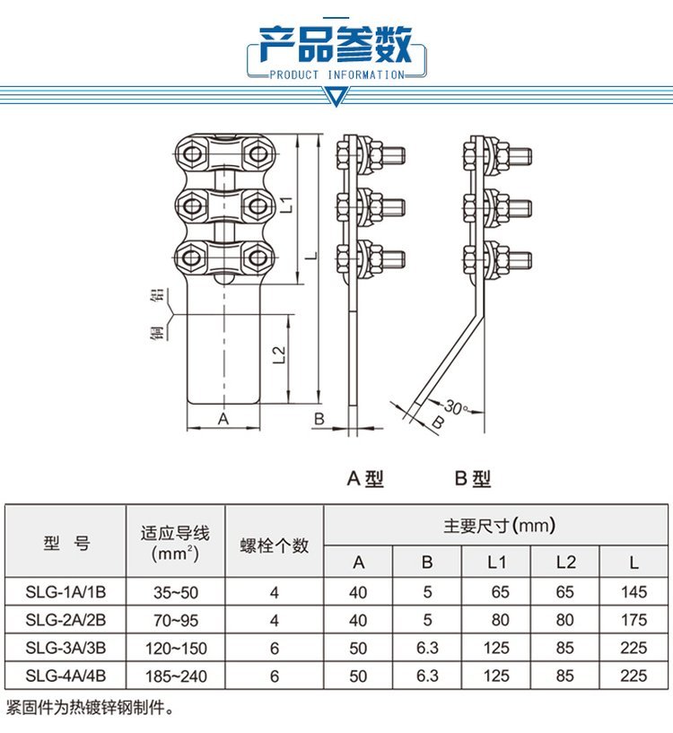 永固新型钎焊SLG-2螺栓型设备线夹铜铝过渡接线夹厂家