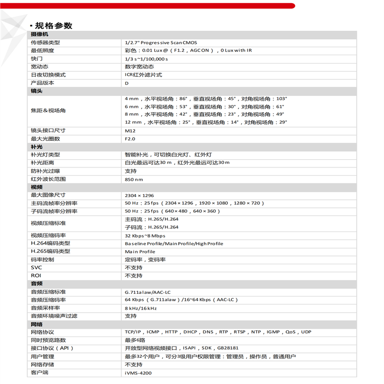 网络协议 | TCP/IP,ICMP,HTTP,DHCP,DNS,RTP,RTSP,NTP,IGMP,QoS,UDP | ||