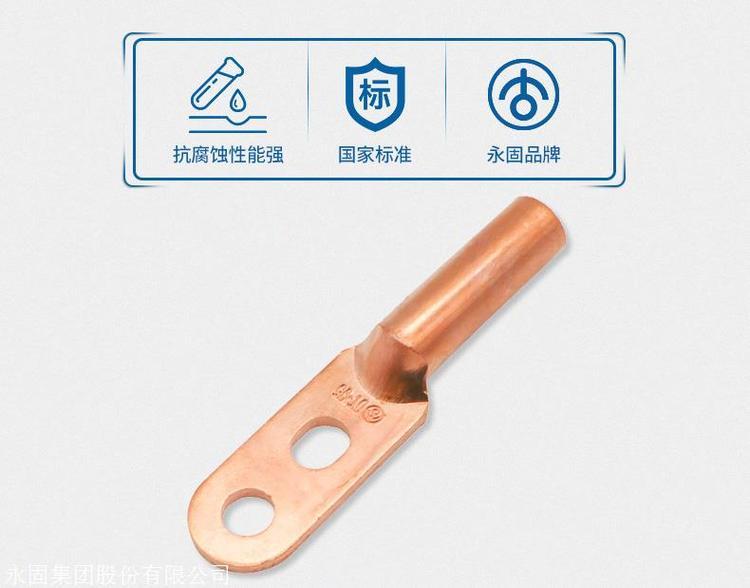型号1:DT,是由T3铜棒做成, 产品外貌为锅铲圆头,可用于密封堵油,顶端这边为固定上螺丝用,末端插进剥皮后的电缆用端子钳压紧即可。