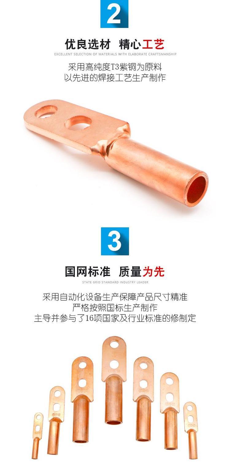 型号1:DTG,是由T3铜管冲压而成,重量略轻于DT,在不需要密封堵油的连接时可代替DT。做工比DT简单快速,价格也相对便宜。
