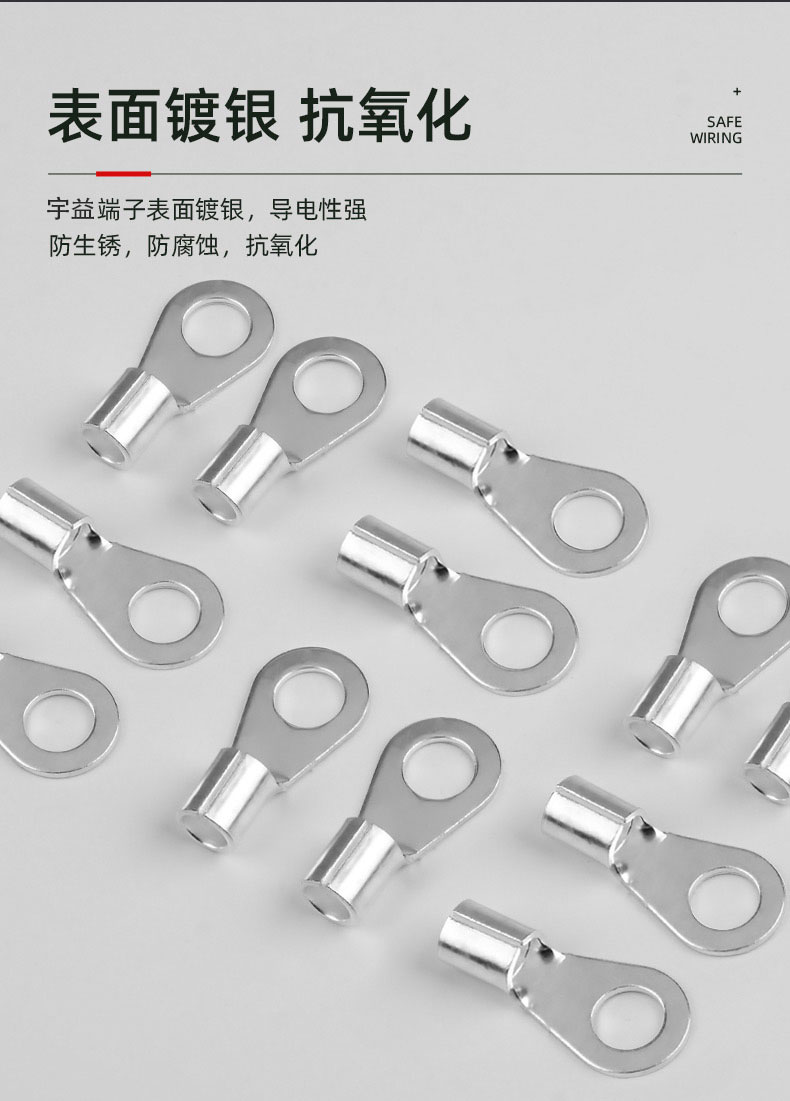 OT圆形裸端子304不锈钢铜鼻子OT16-8镀银O型冷压线鼻子宇益电气