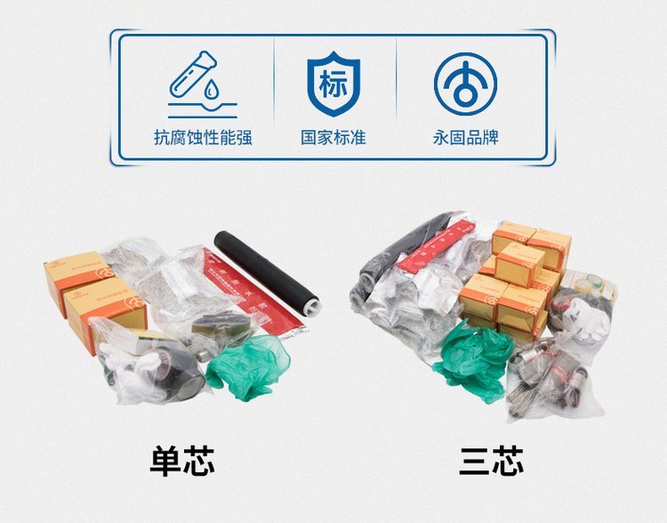 的单芯三芯交联电力电缆的连接,起密封、绝缘、应力疏散的作用。特别