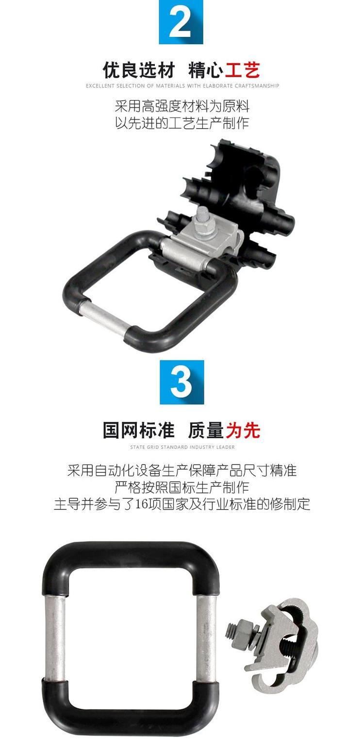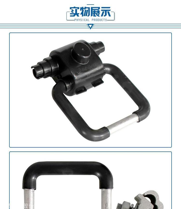 性能特点 Performance1、夹体采用高强度铝合金制造,重理轻2、施工方便,接地安全可靠3、可适用多种规格导线4、绝缘罩采用硅橡胶制造而成的,绝缘性能好,交流耐压≥18kV