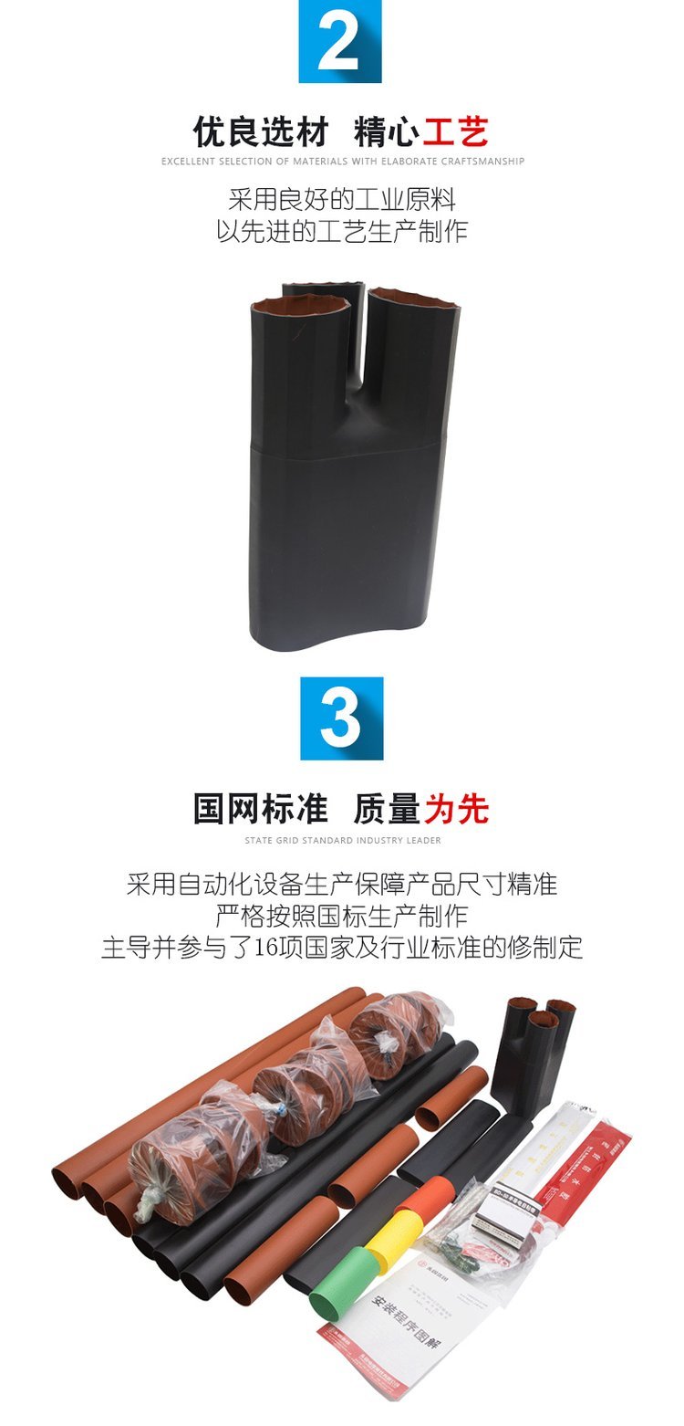 热缩电缆终端头俗称热缩电缆头,广泛用于35KV及以下电压等级的交联电缆或油浸电缆的终端上。与传统电缆附件相比具有体积小、重量轻、安全可靠、安装方便等特点。产品符合GB11033标准,长期使用温度范围为-55℃~105℃,老化寿命长达20年,径向收缩率≥50,纵向收缩率