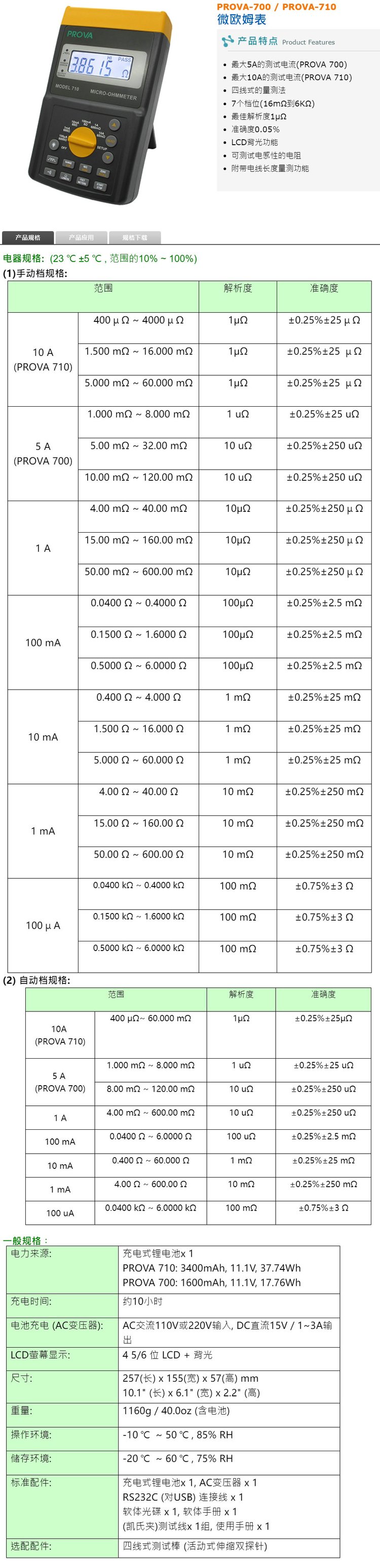 泰仕PROVA-700/PROVA-710微欧姆表微电阻计专业微电阻仪 品牌 | 泰仕TES | ||