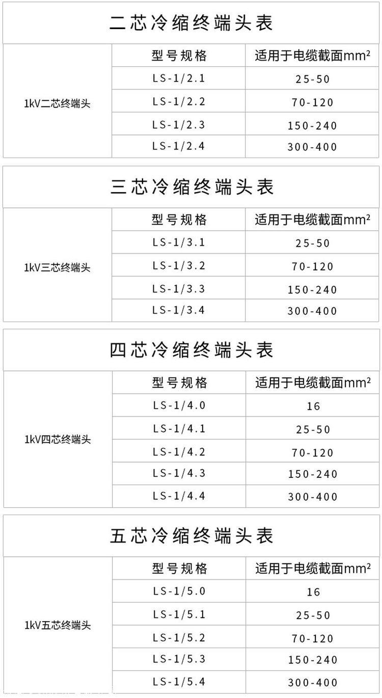 永固金具LS-1/4.1KV冷缩终端头四芯户内电缆附件 品牌 | 永固 | ||