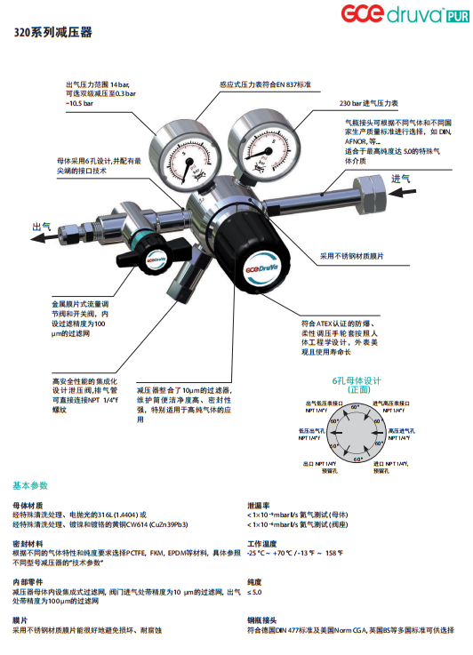 GCEDruva高纯气体管路减压器气瓶减压阀调节器气体控制面板