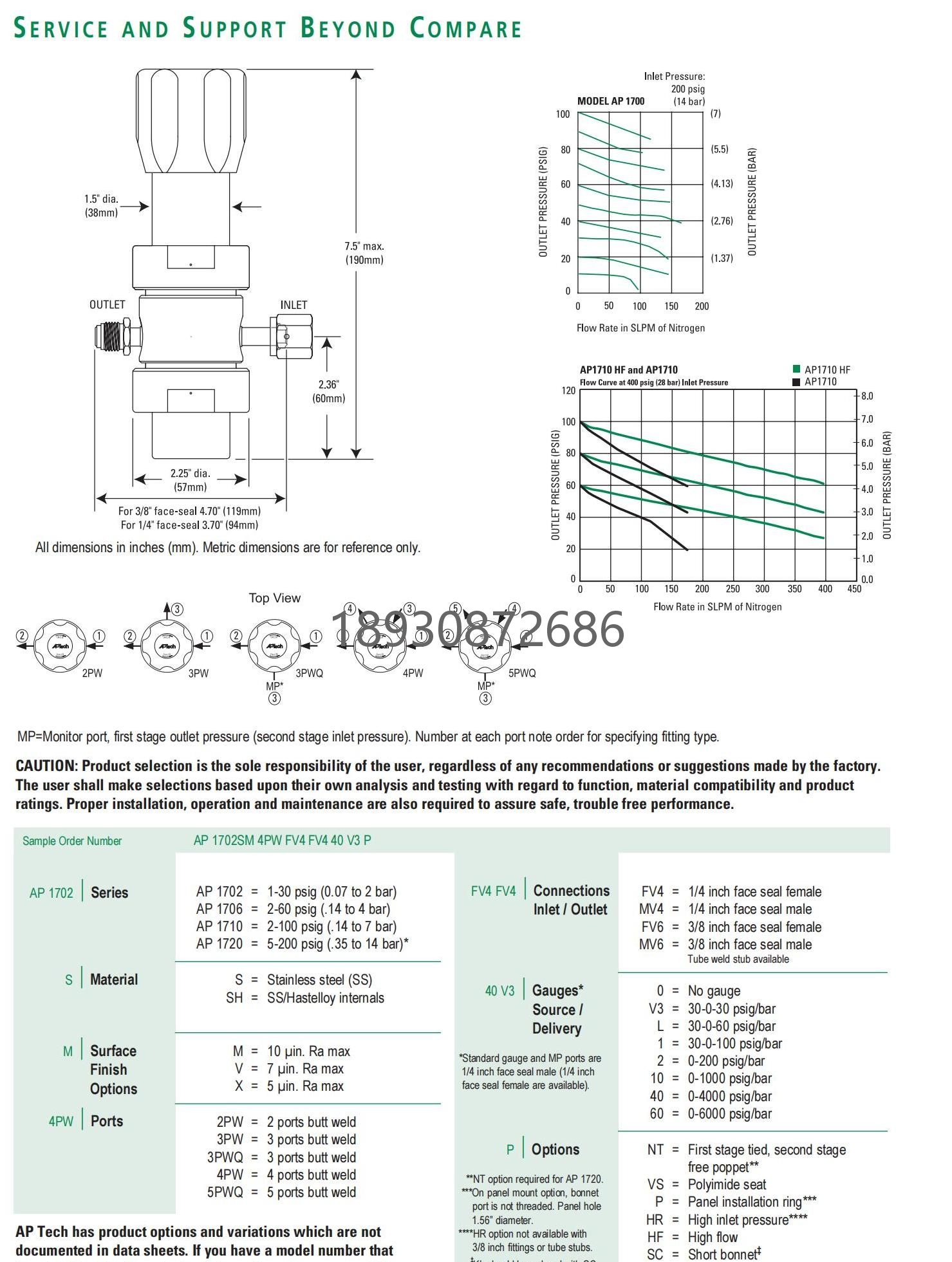 高纯度用双级二段式减压阀AP1710S系列B2H6高压减低压稳压阀