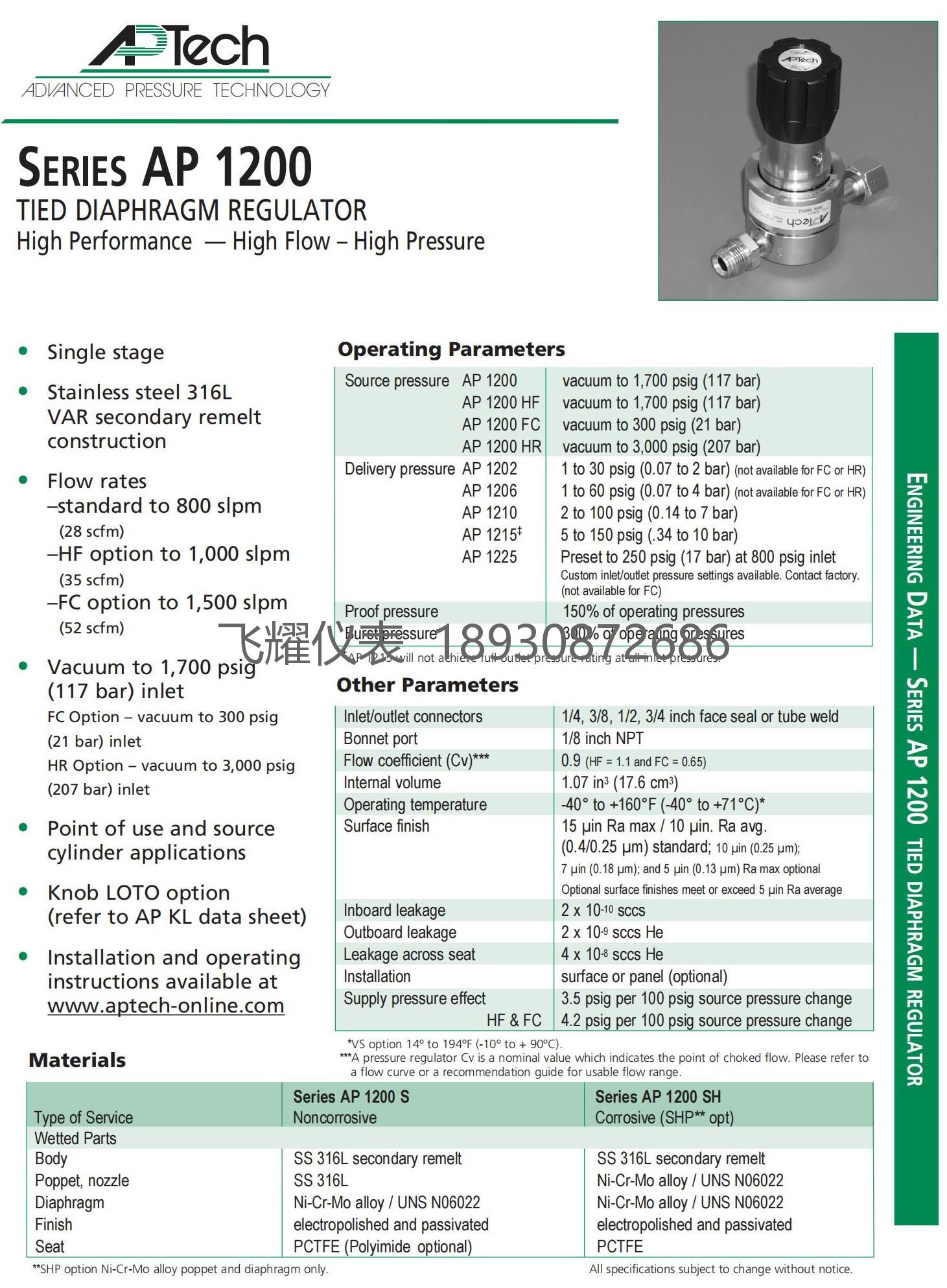 美国APTECH全新原装进口EP大流量调压阀AP1215S23PWFV8FV8HF