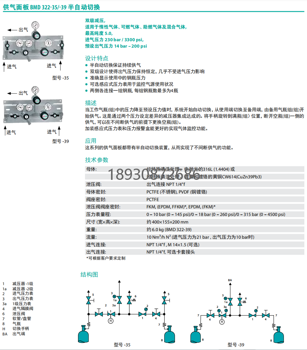 德国GCEDruva减压器供气面板半自动切换装置不锈钢输气管道阀门