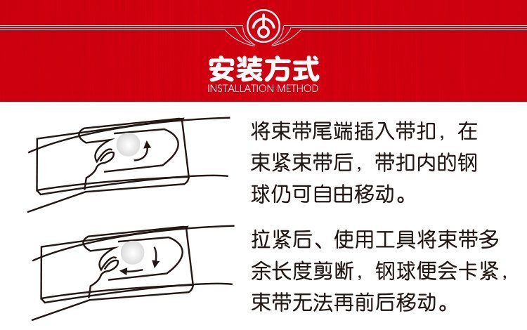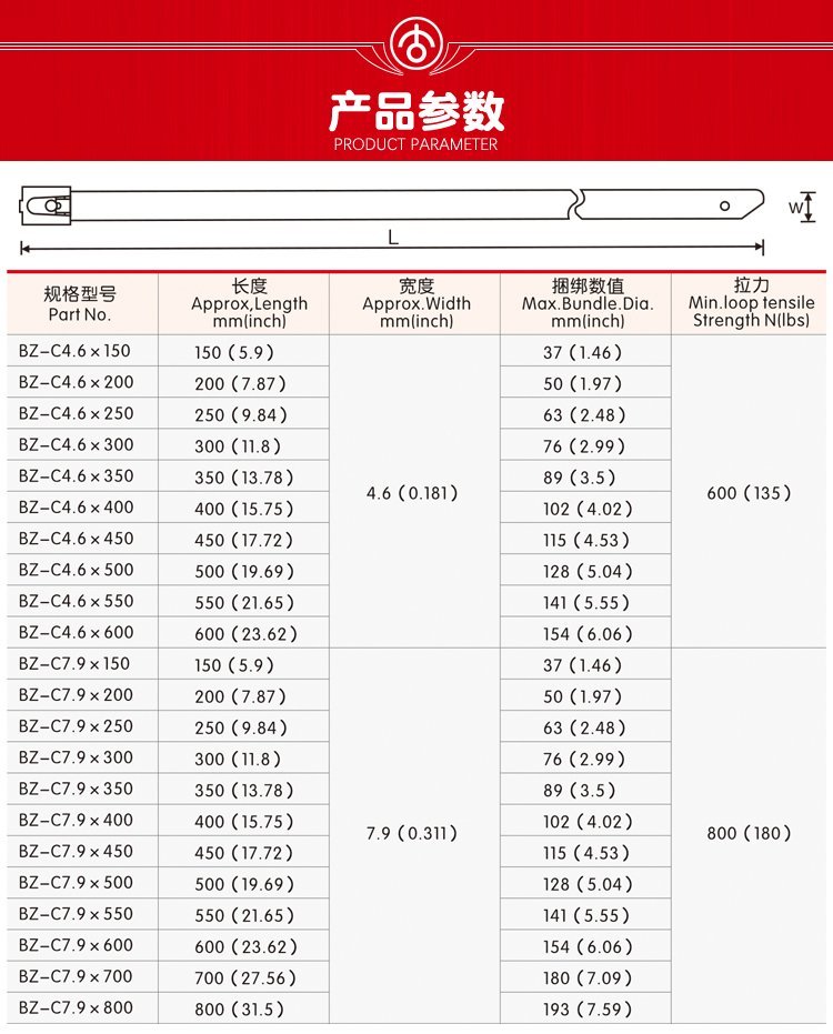 不锈钢扎带是一种主要用于工业捆绑固定作用的不锈钢制品,因其采用不锈钢材料,所以拥有不锈钢耐化学腐蚀介质(酸、碱、盐等化学浸蚀)腐蚀的特性。 同时不锈钢扎带产品不受被捆扎物体形状和尺寸的限制,简单的扎扣结构简化了传统抱箍的复杂性,良好的紧固性能保证了被捆扎物体的安全,不锈钢扎带防腐并且耐高温的材料,保证了环境的美观及防火要求; 中文名不锈钢扎带外文名StainlessSteelCableTie特点良好耐腐蚀性能、较高的硬度采用材料普通钢、镍、铬、钼 锈钢扎带是一种主要用于工业捆绑固定作用的不锈钢制品,因其采用不锈钢材料,所以拥有不锈钢耐化学腐蚀介质(酸、碱、盐等化学浸蚀)腐蚀的特性。 同时不锈钢扎带产品不受被捆扎物体形状和尺寸的限制,简单的扎扣结构简化了传统抱箍的复杂性,良好的紧固性能保证了被捆扎物体的安全,不锈钢扎带防腐并且耐高温的材料,保证了环境的美观及防火要求;
