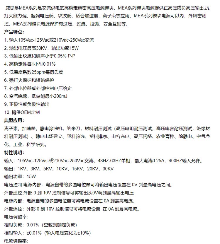 威思曼MEA系列高压电源模块性能稳定使用寿命长