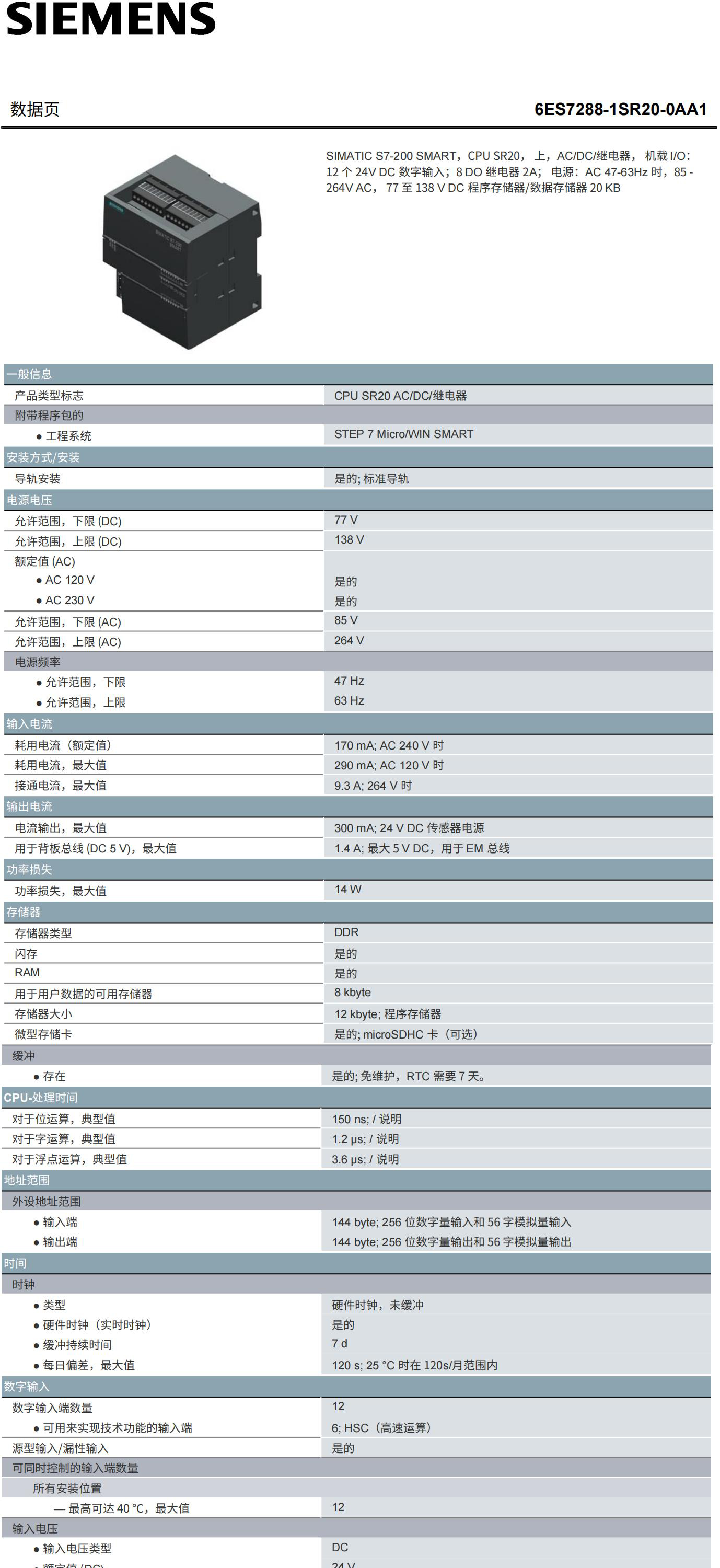 6ES7288-1SR20-0AA0/0AA1西门子S7-200 SMART CPU SR20继电器输出 型号6ES7288-1SR20-0AA0/0AA1