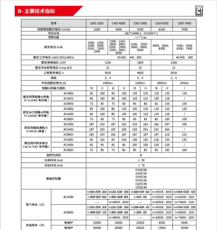 额定电流2000A、2500A、2900A、3200A