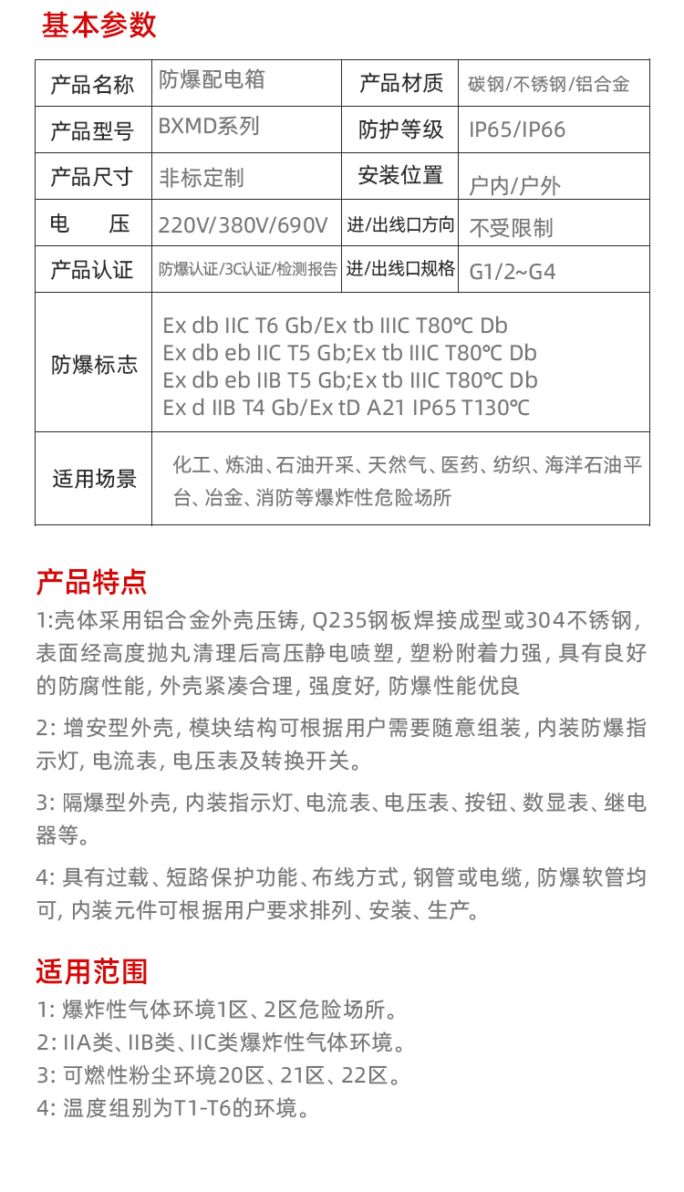 适用环境 | 石油石化、化工、酿酒、医药、油漆、纺织、印染、军工设施等爆炸性危险环境 | ||