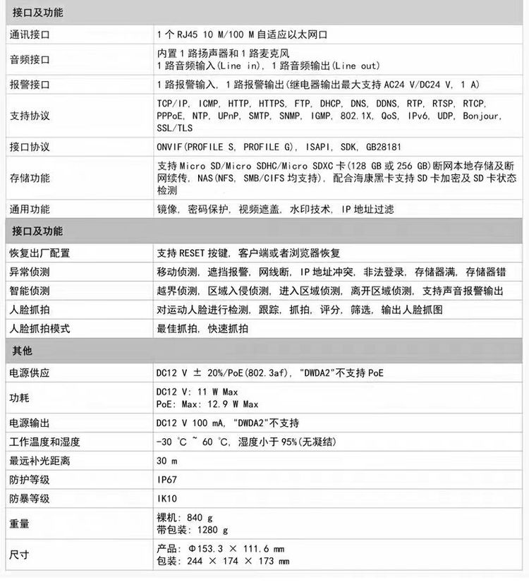 海康200万人脸抓拍半球电动变焦音频对讲DS-2CD3726FWDA2/F-IZS 品牌 | 海康 | ||
