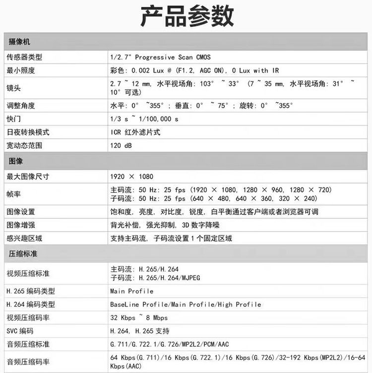 产品参数 | |||