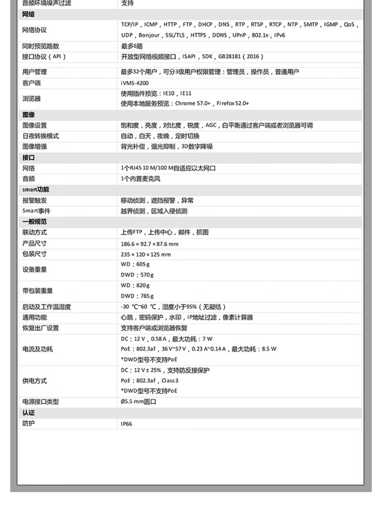补光距离 | 红外光最远可达50 m,白光最远可达30 m | ||