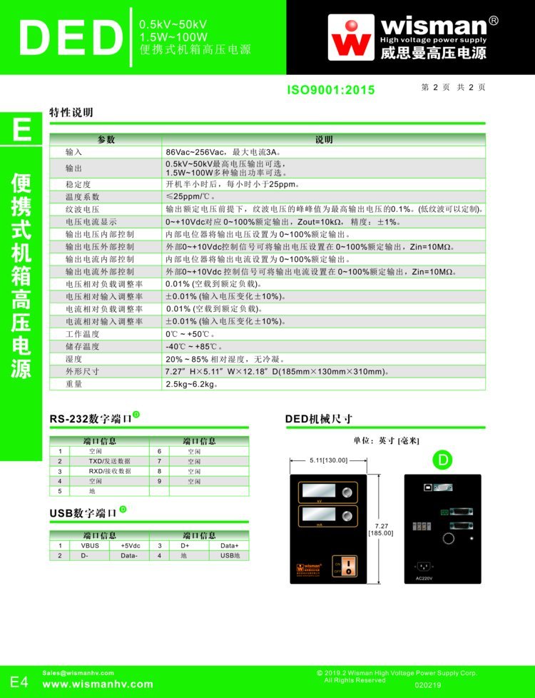 威思曼DED系列-便携式机箱高压电源多种输出可选