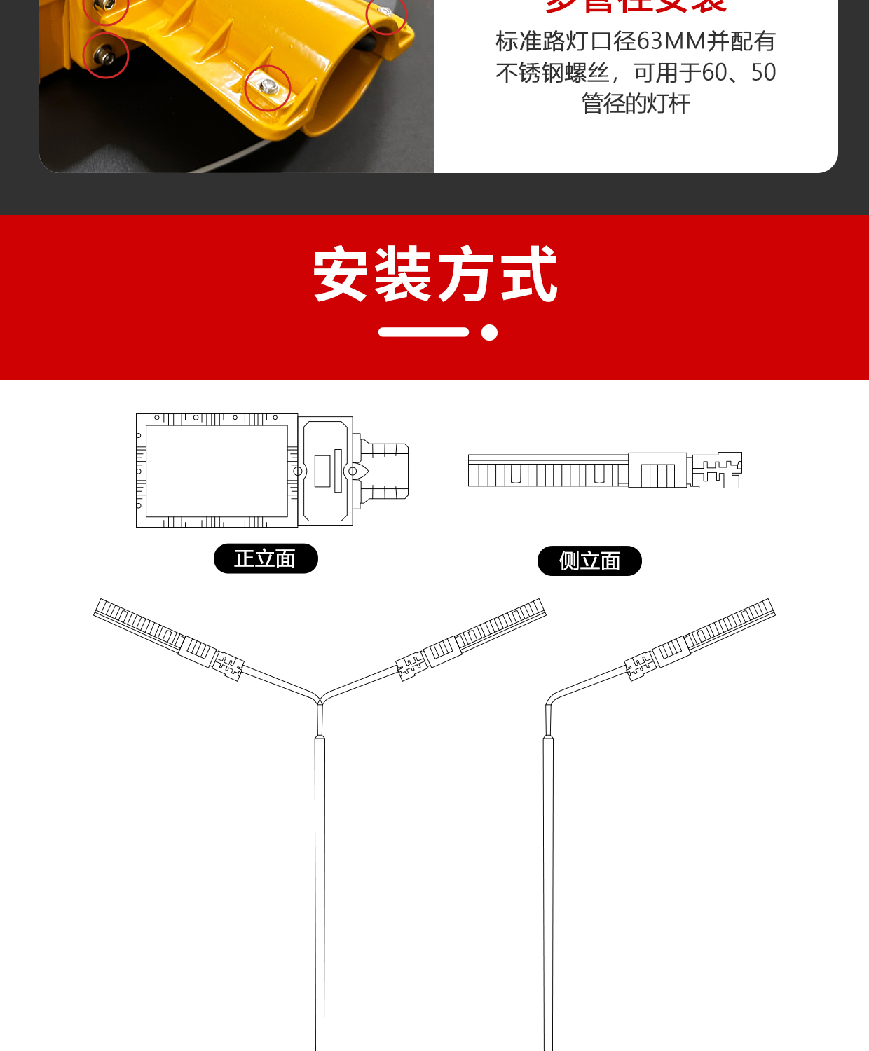 安装方式 | 座式、侧壁式、吊杆式/抱箍式、路灯 | ||