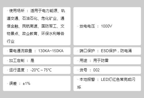 雷电监测范围 | 1KA~100KA(根据应用类型需要定制) | ||