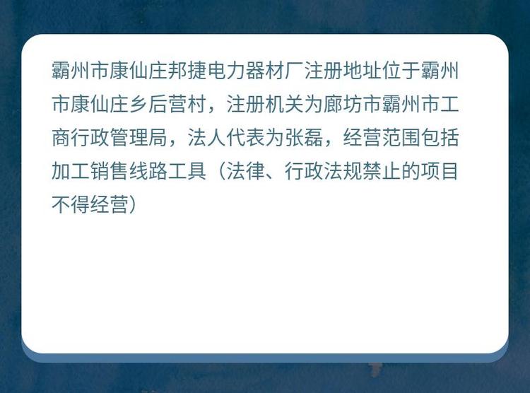 商铺名称:霸州市康仙庄邦捷电力工具厂