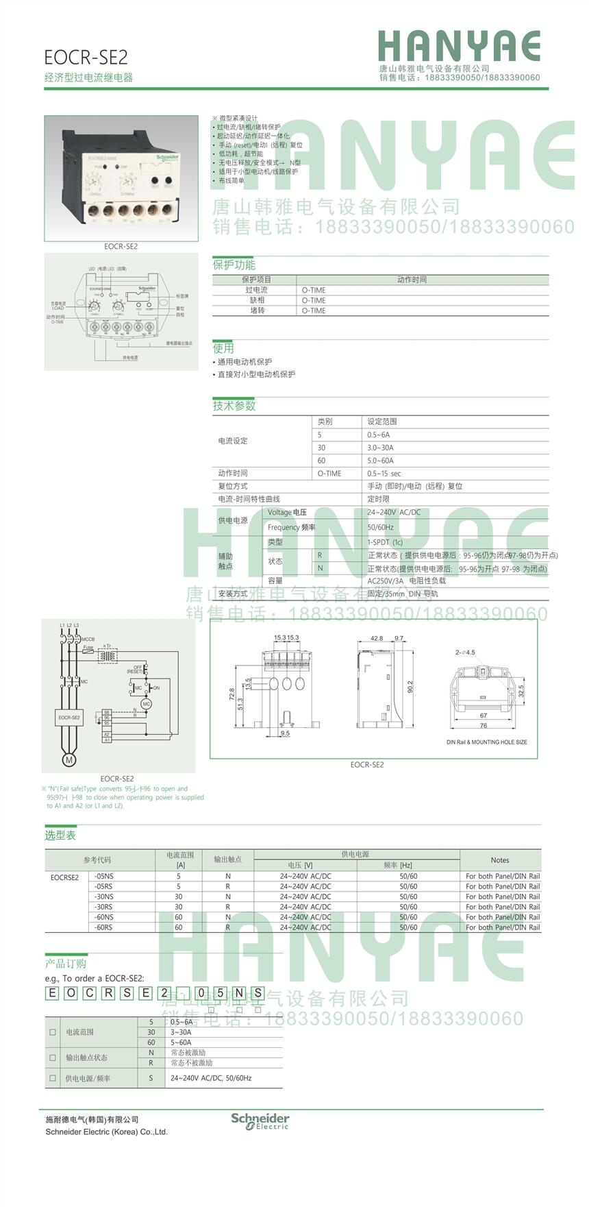 EOCR韩国三和生产的高科技电子式智能电动机保护器系列产品,具有设计精巧、动作可靠准确,曾多次荣获国际、国内大奖,在世界几十个国家申请专利,深受广大用户的信赖。产品性能:启动、过载延时可设定;短路、缺相、过流、欠流、相不平衡、逆相均可保护、设定;设备运行时间及运行时间累计,均可显示;故障原因可存储、显示;触敏键自检、复位。