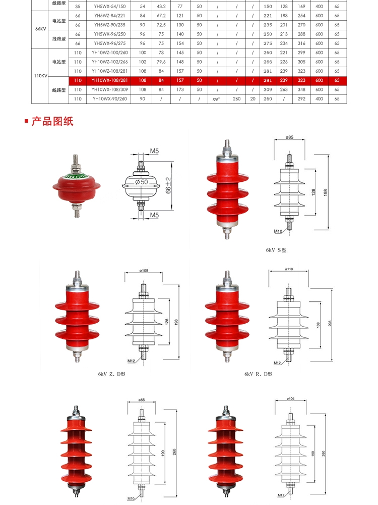 YH5WX-108/281简介;该产品的核心工作元件采用以氧化锌为主的多元素金属氧化物粉末烧制,具有优异的非线性伏-安特性,陡波响应快,通流容量大。有间隙产品采用自吹间隙,带均压照射结构,降低了放电的分散性,冲击系数小。