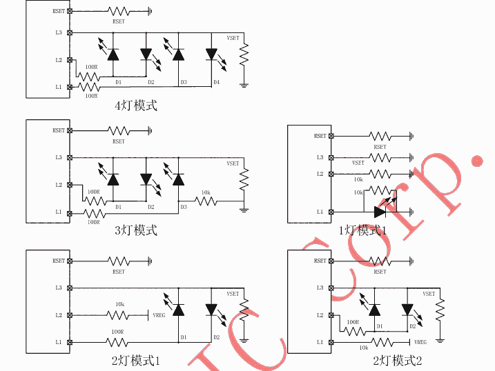 支持1/ 2 / 3 / 4 颗LED 电量显示