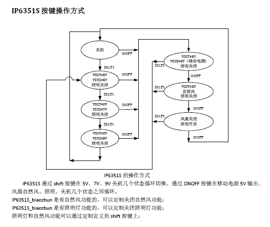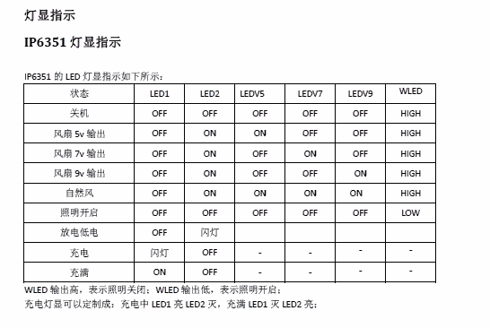 IP6351/IP6351S 可支持 5V、7V、9V 三档风速 LED指示。支持自然风功能。