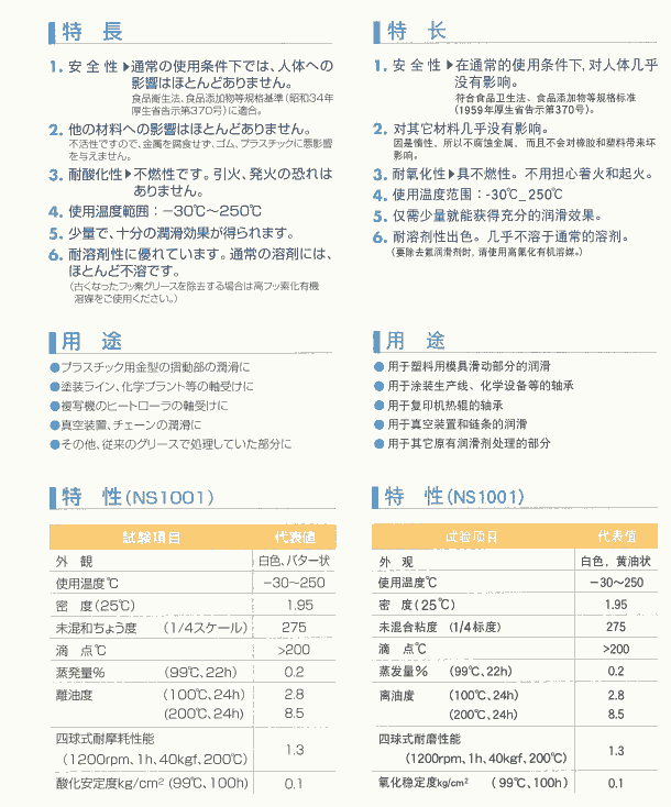 使用温度範囲: -30℃~250℃潤滑効果が得られます。
