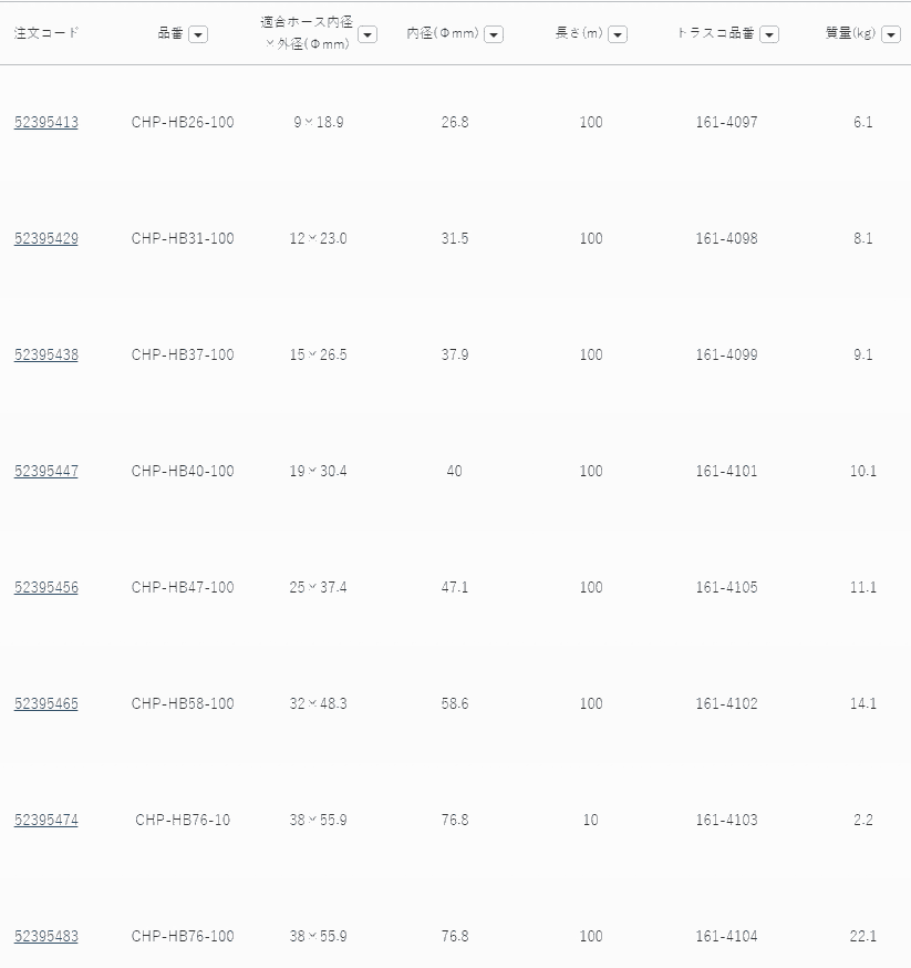 用途ホース破損時の飛散防止に、ホース本体の磨耗防止に 材質6ナイロン 厚さ(mm)1.15 使用環境温度(℃)-40~110 内容量1本