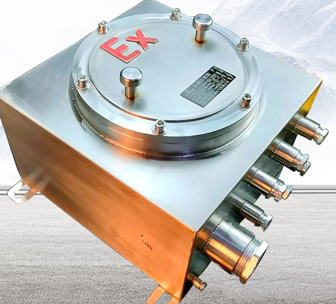 防爆控制箱外壳采用钢板焊接或铸铝合金或者304不锈钢压铸成型, 表面高压静电喷塑,产品整体一般采用隔爆型外壳和增安型外壳组合成的复合型结构。