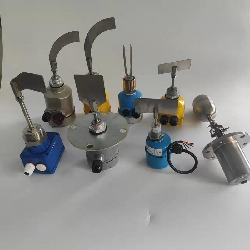 本机采用同步微电机经减速后,带动检测叶片以每分钟一转的速度旋转。当被测物料的料位上升使叶片转动受到阻碍时,检测机构便围绕主轴产生旋转位移。此位移首先使一个微动开关动作,发出料位信号。随后另一个微动开关动作,切断电机电源使其停转。只要料位不变这种状态便一直保持下去。