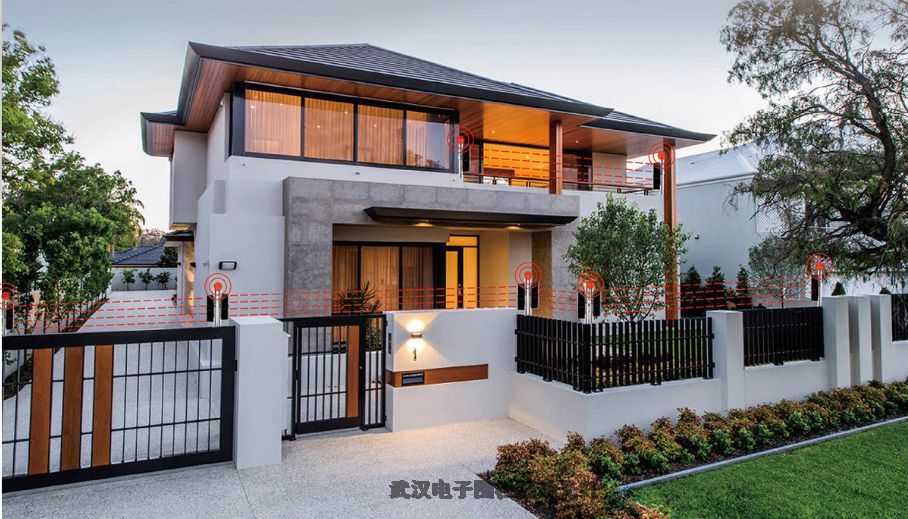 在别厂区围墙安装红外对射探测器和微波感应探测器,红外对射探测器安装在别厂区围墙上,间隔20至80米安装一对,若有弯曲或者高矮不一的围墙,可适当调节安装距离,防止有人从围墙,在此安装了红外对射后,一旦有人想从围墙翻进别厂区,必然会触发红外装置,就会报警。